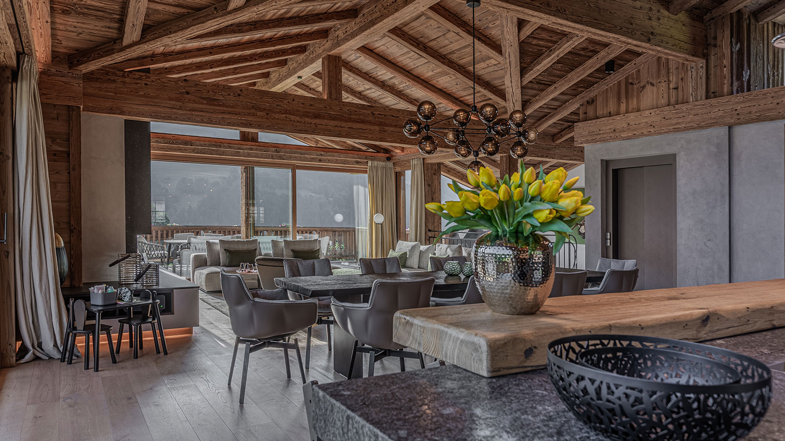 Created with the highest-quality materials, Alpine Hideaway represents luxury at its finest and includes a large terrace and a striking fireplace.