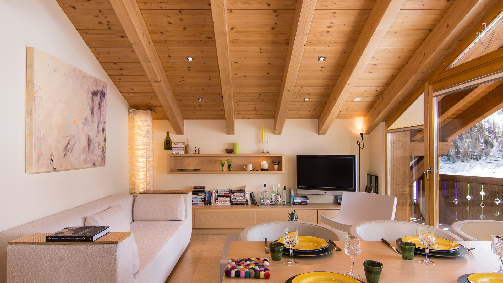 Aramis 4.2 is a very rare opportunity in Saas Fee, located in an ideal and highly sought after ski in, ski out position, right next to the slopes and just up from the centre.