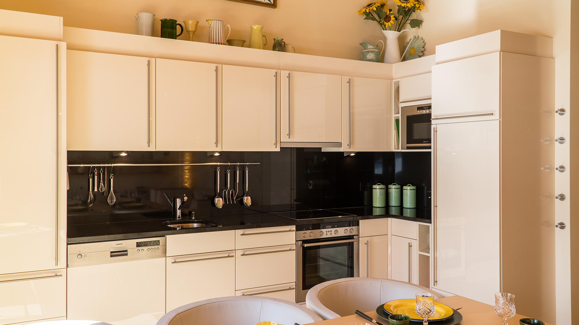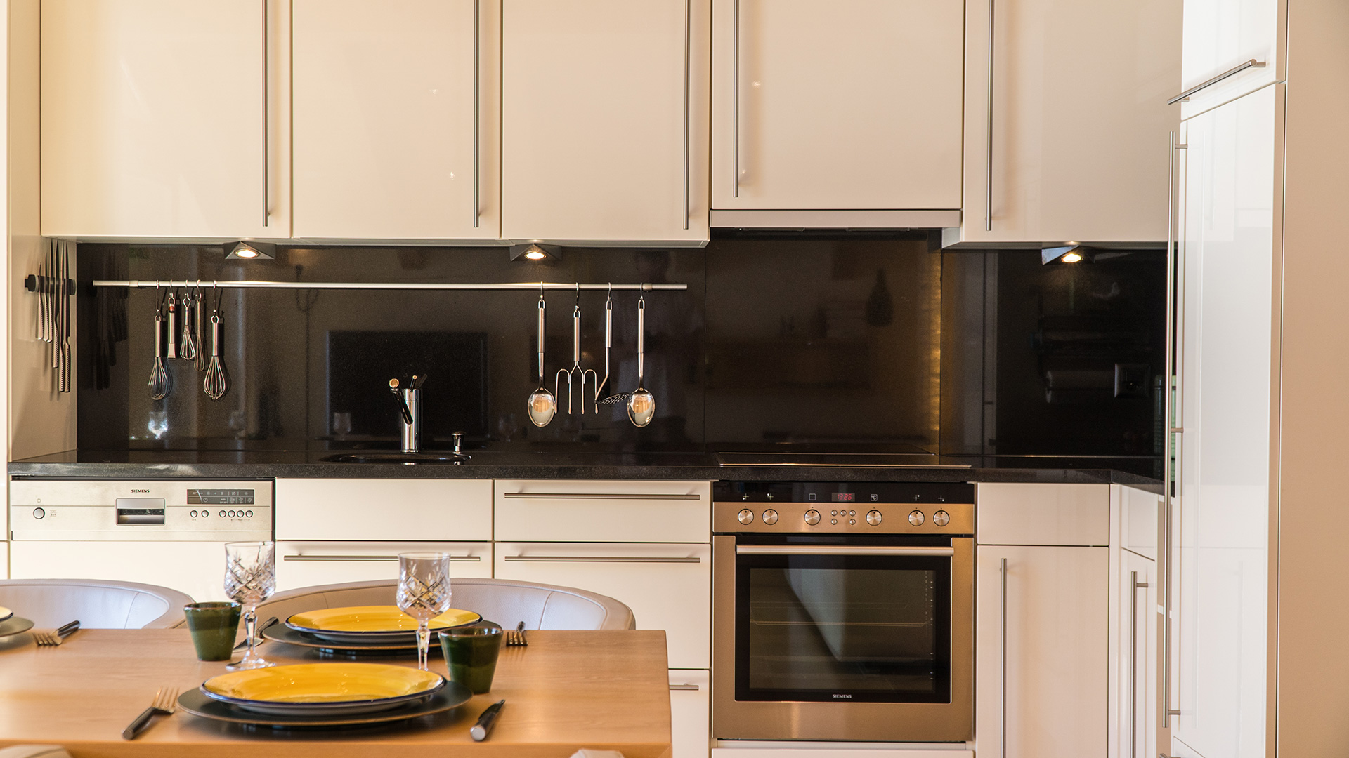 Situated on the fourth floor and with high ceilings in the spacious living/kitchen/dining room, Aramis has three bedrooms, all of which are ensuite.