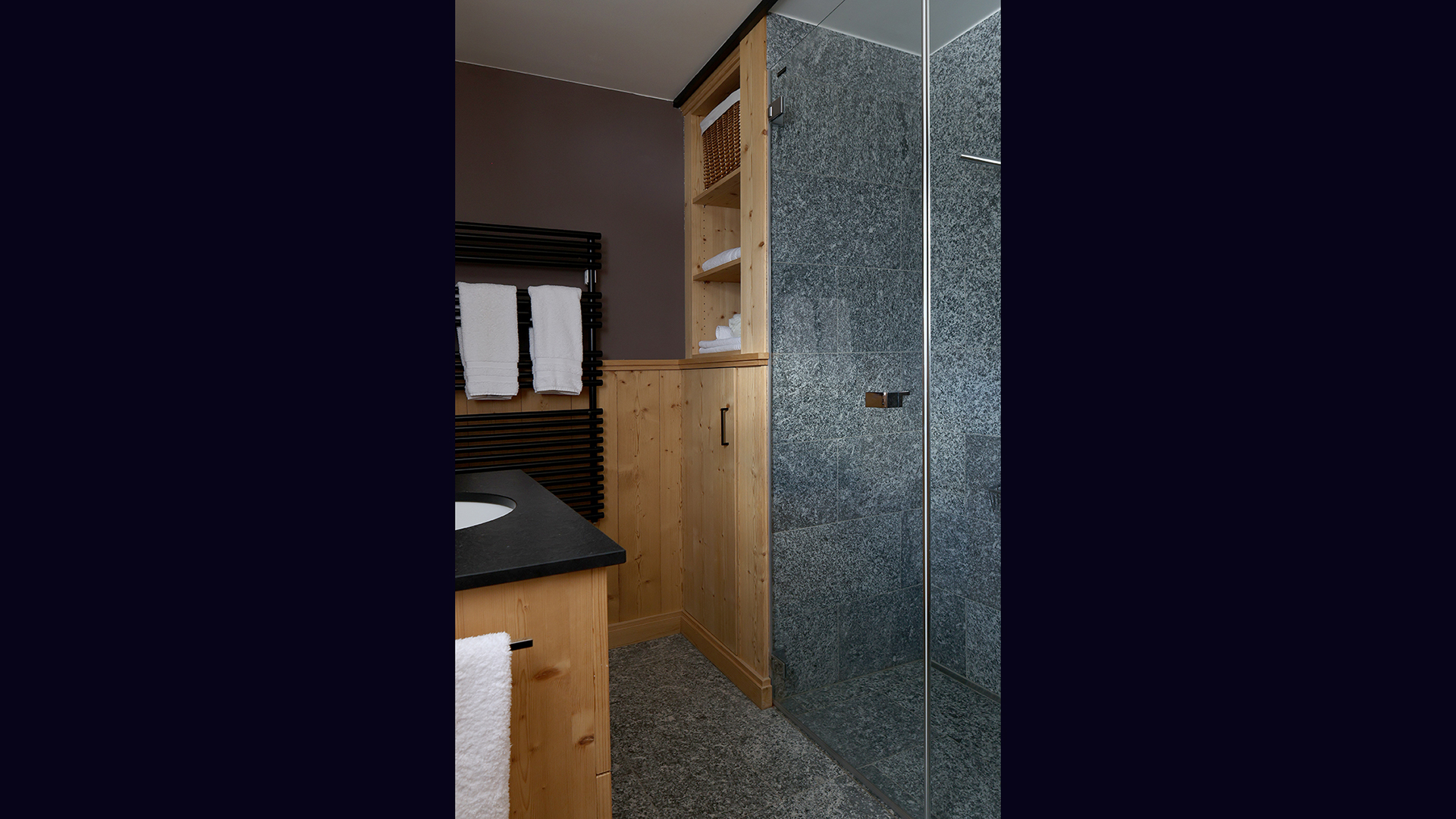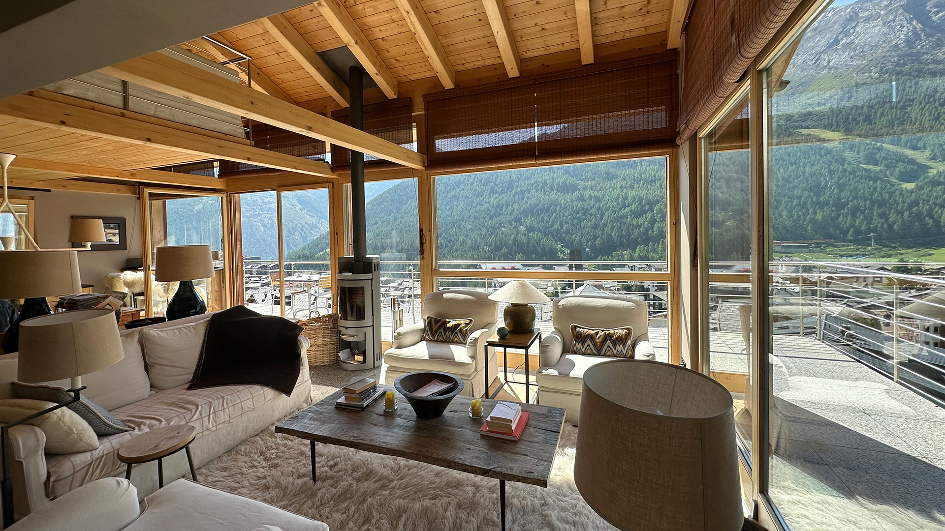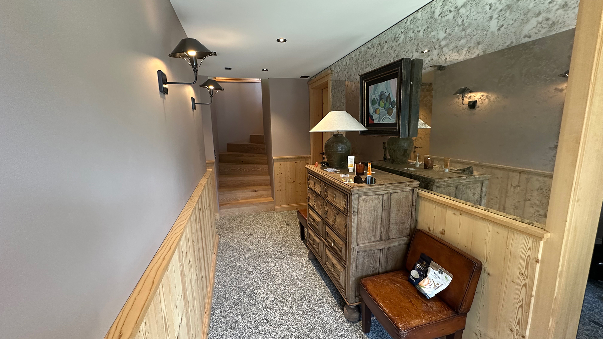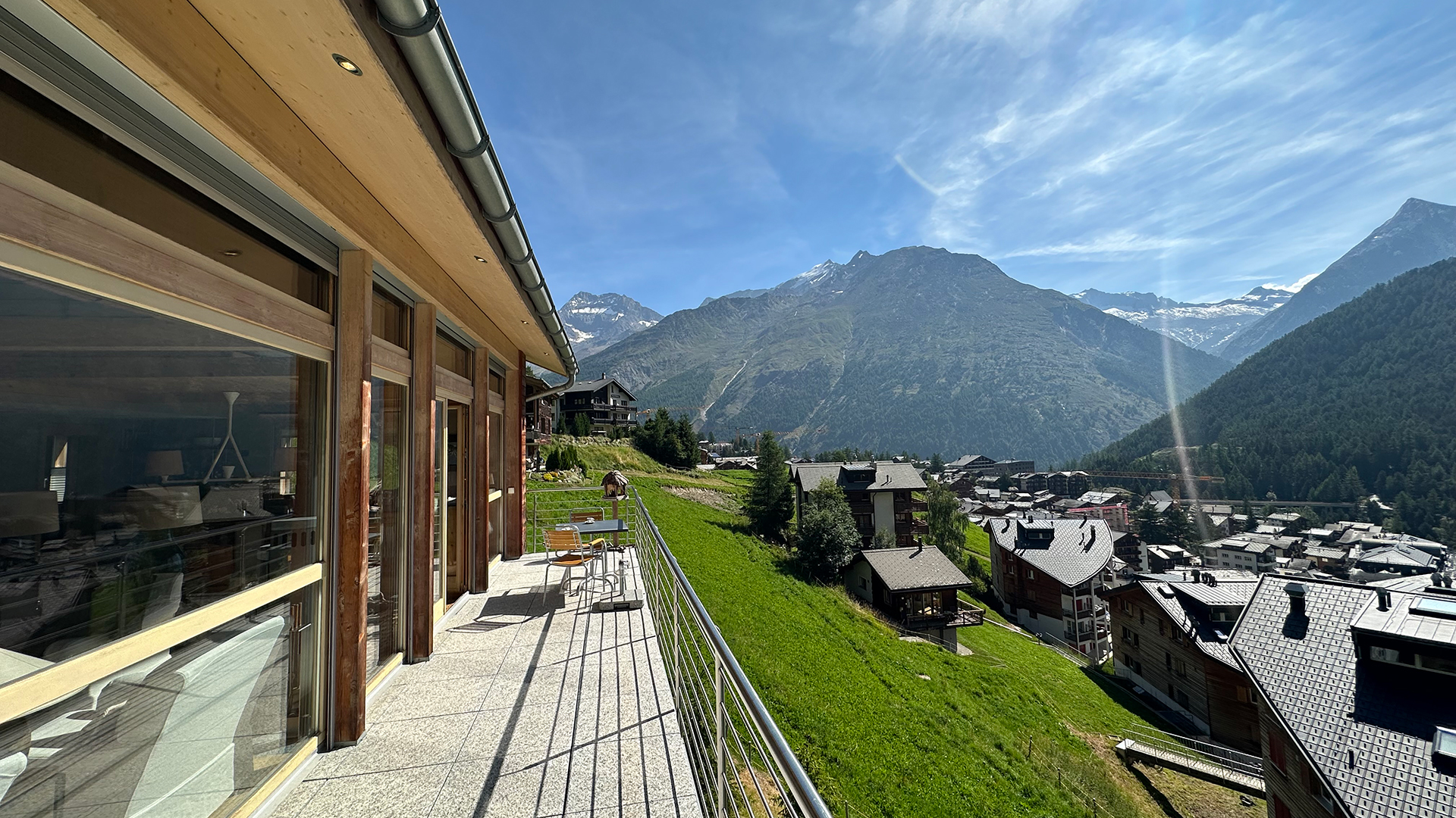 A large south-east facing balcony and terrace then provide far-reaching and un-obstructed views of the mountains and village.
