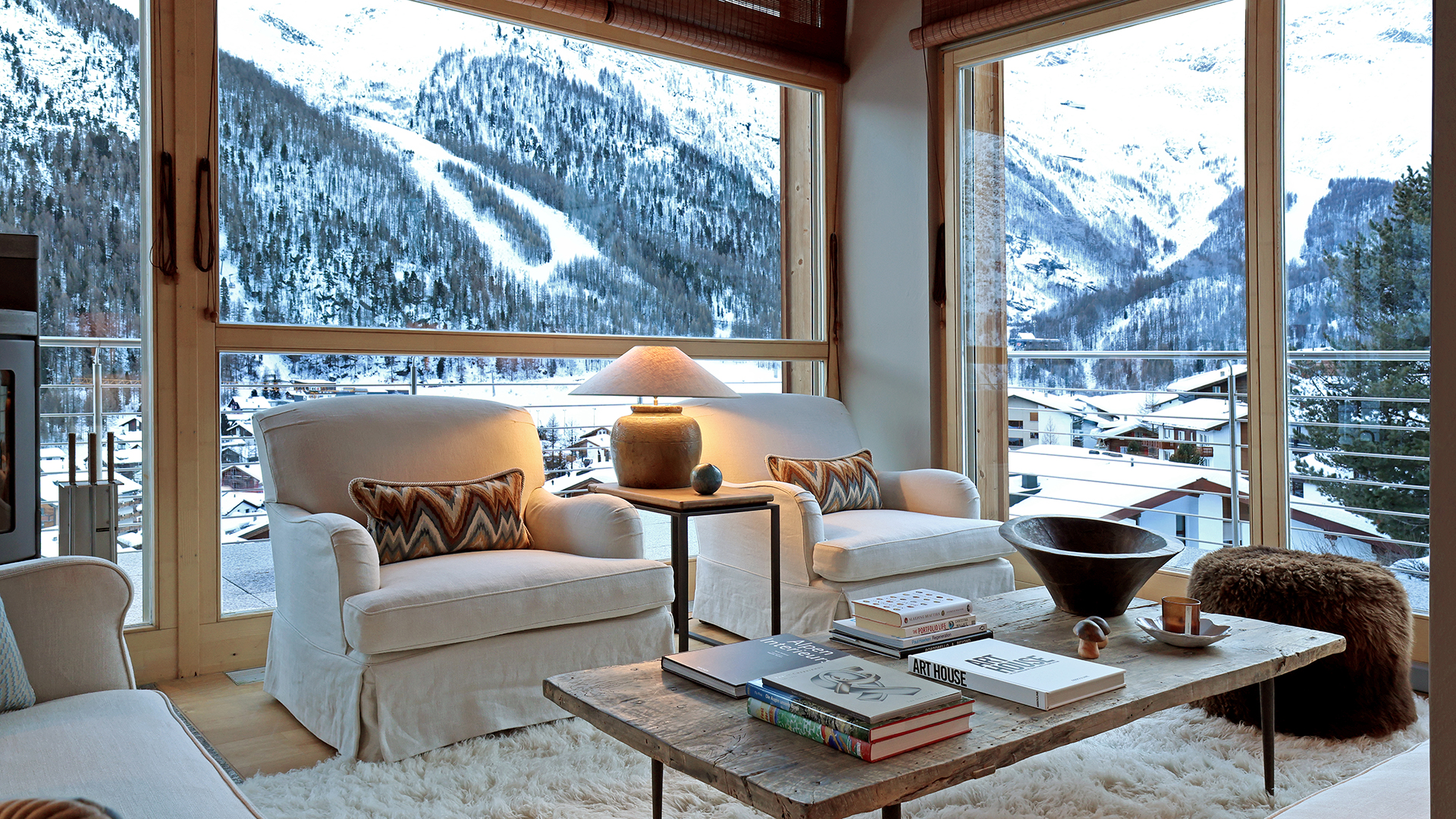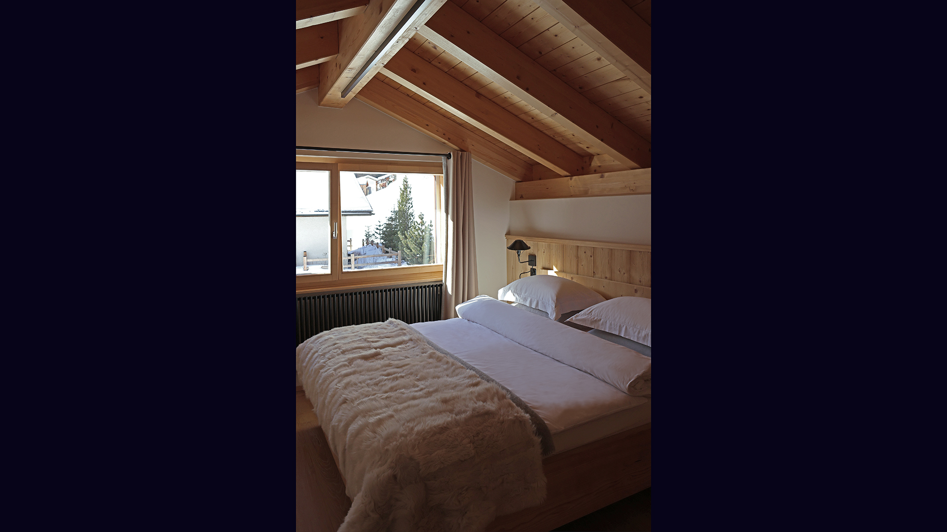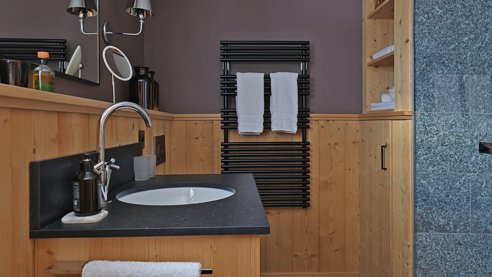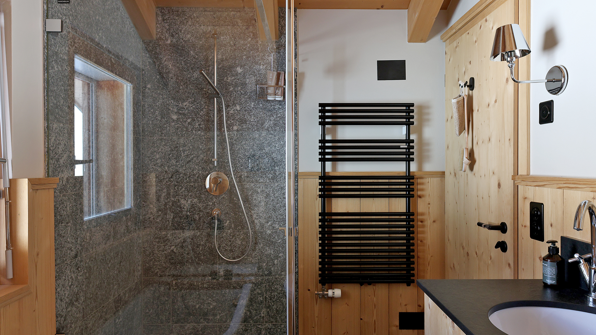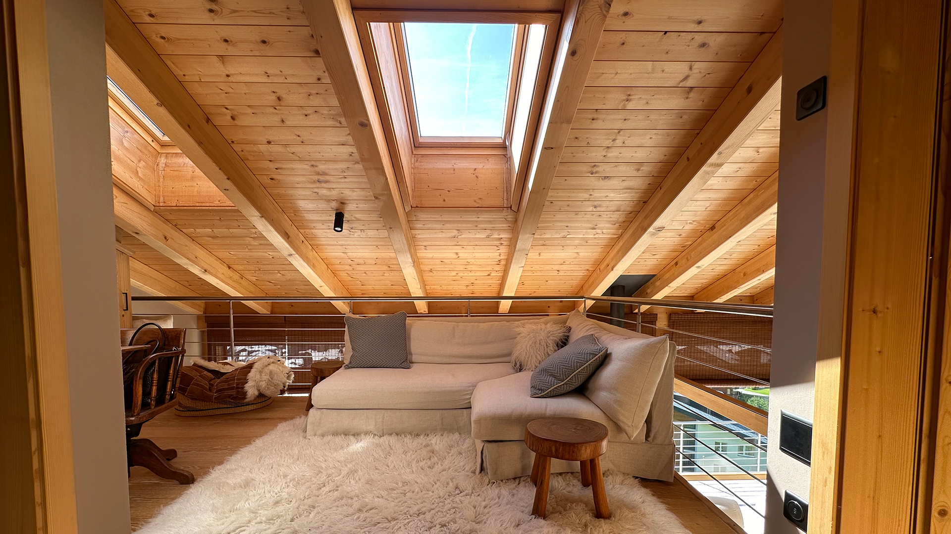 A large south-east facing balcony and terrace then provide far-reaching and un-obstructed views of the mountains and village.