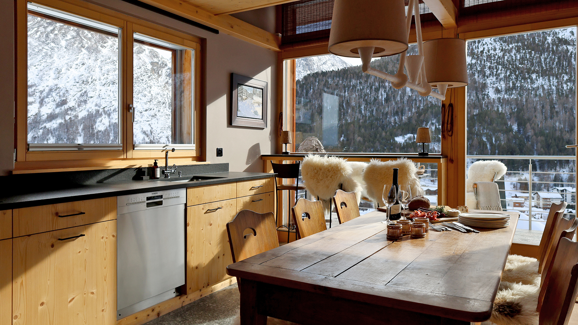 A large, high quality chalet spread across four floors and located in the sunny Wildi area of Saas Fee, just a short walk from the centre.